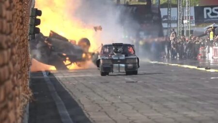 Acidente de piloto paranaense em prova de arrancada: carro de R$ 2 milhões antes e depois do sinistro