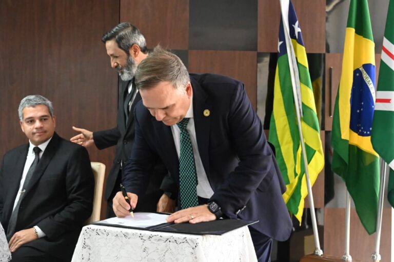 O prefeito de Goiânia, Sandro Mabel, participou, nesta sexta-feira (24/10), da assinatura da sanção da lei municipal que altera o nome da Avenida Progresso, no