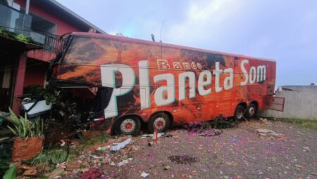 Acidente fatal envolvendo ônibus de banda catarinense na BR-158: uma pessoa morta e sete feridas. Importância da prudência no trânsito.