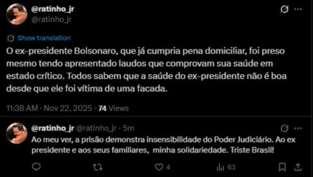 Governador do Paraná, Ratinho Junior, critica prisão de Bolsonaro e enfatiza saúde fragilizada. Opinião polêmica gera debate.