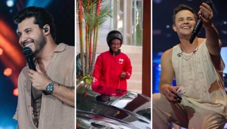 Entregador se surpreende ao deixar pedido para Murilo Huff e Matheus: Momento inusitado com sertanejos