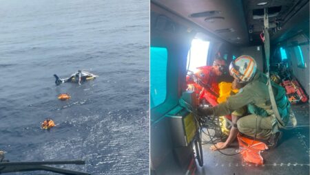 Táxi aéreo faz pouso de emergência no mar do RJ: 8 vítimas resgatadas pela Marinha. Aeronave transferida para base naval.