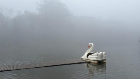 Nevoeiro transforma Lago Negro de Gramado em paisagem acinzentada