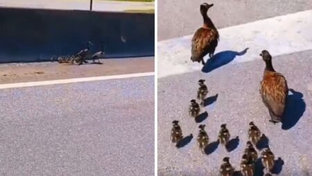 Polícia ajuda família de patos a atravessar Rodovia Dutra em SP
