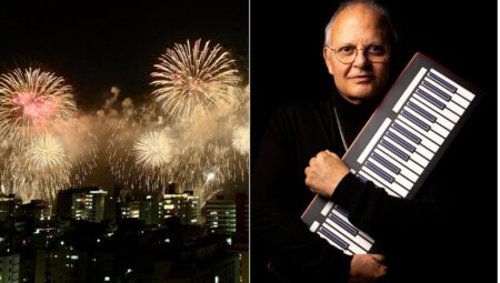 Réveillon Santos 2026: fogos de artifício inspirados na história da cidade. Celebrando 480 anos com espetáculo emocionante.