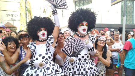 Folião presta homenagem emocionante a cão Orelha durante desfile do Cordão da Bola Preta, chamando a atenção para maus-tratos e pedindo justiça.