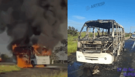 Atletas de karatê agem rápido e evacuam ônibus em chamas – Incidente controlado pelo Corpo de Bombeiros