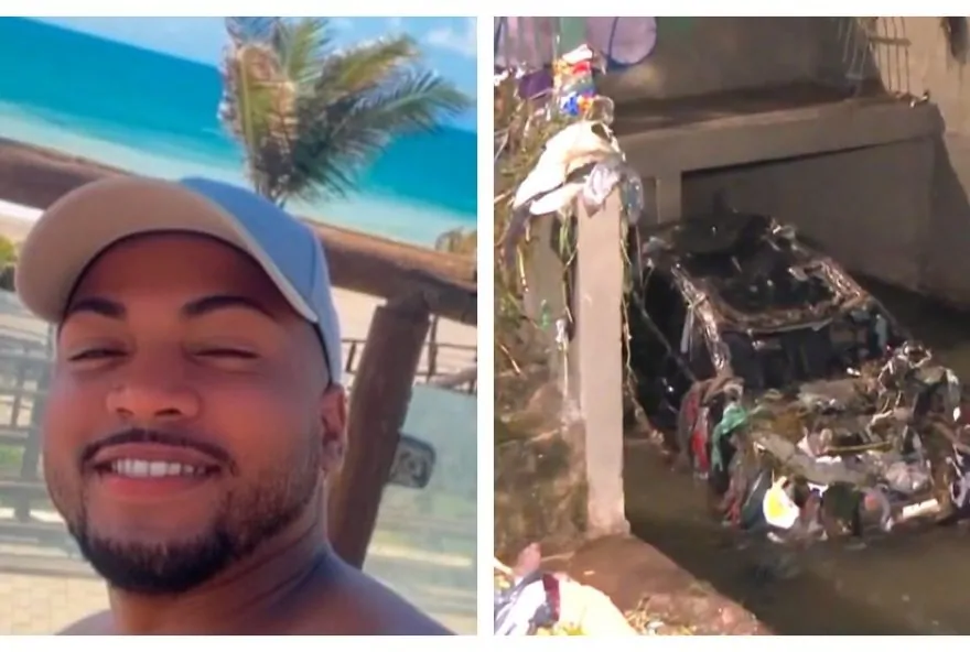 Erik Santos desapareceu na noite de quinta-feira (6) e o carro dele foi localizado na madrugada desta sexta-feira (7) dentro de um córrego totalmente destruído.