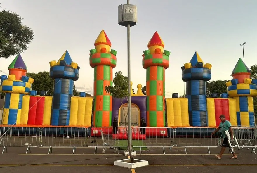 Suspeitos de furtar castelo inflável gigante de shopping, pai e filho são alvos de operação no interior de SP