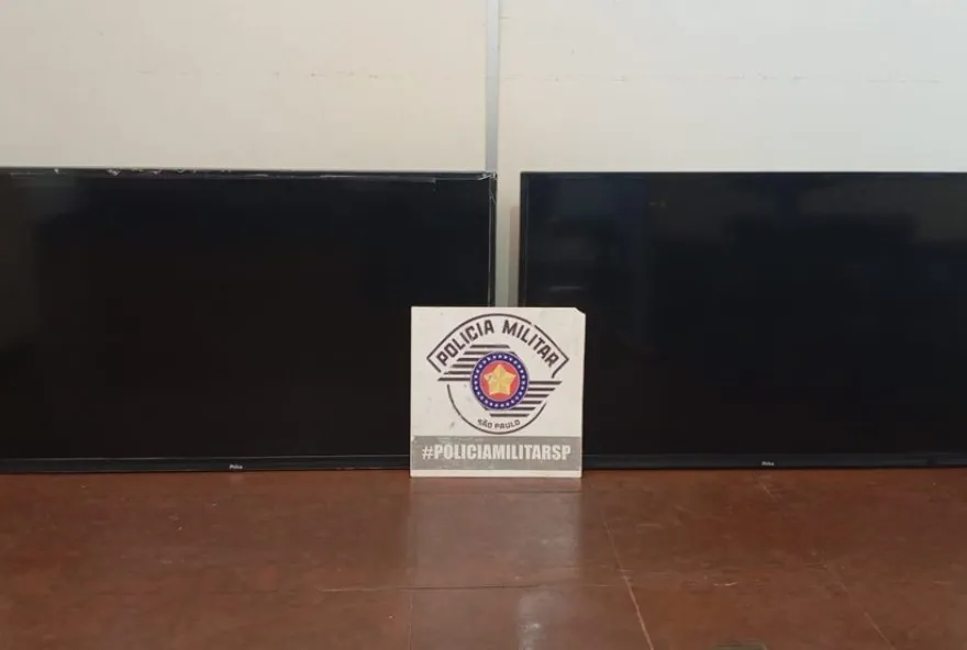 Televisores de 40 polegadas foram furtados em Salmourão (SP) — Foto: Polícia Militar