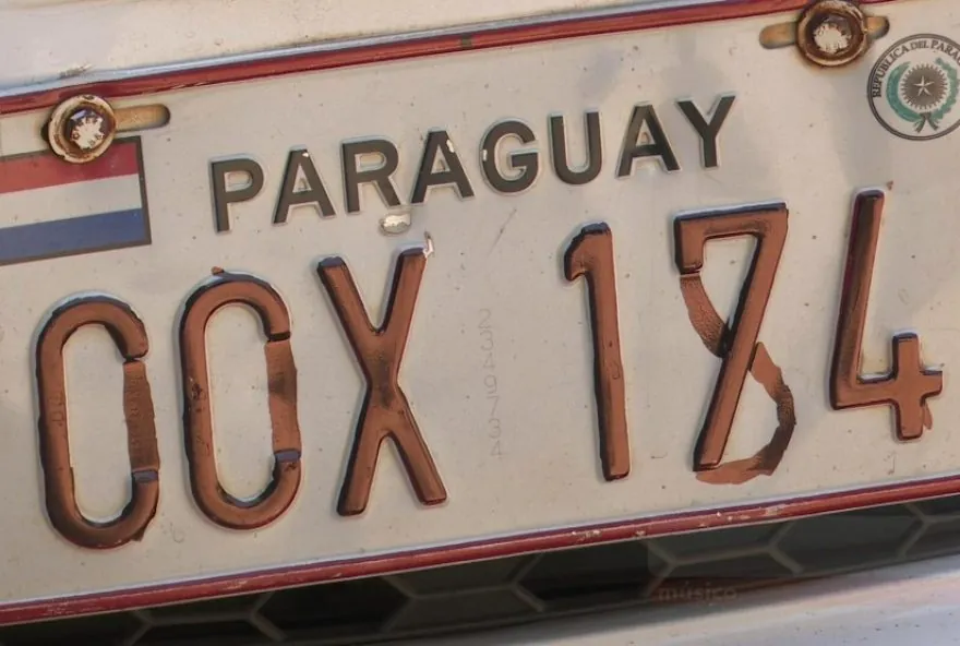 Criminosos adulteraram placa de carro com tinta para tentar fugir após assalto, em Foz do Iguaçu