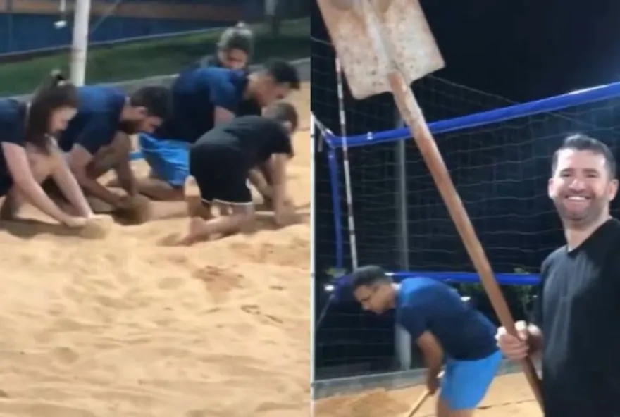O que começou como uma simples partida de futevôlei entre amigos se transformou em uma verdadeira missão de “caça ao tesouro” após um dos jogadores perder sua aliança na areia. O incidente, registrado em vídeo e compartilhado nas redes sociais por Victoria, prima do homem que perdeu o anel, rapidamente chamou atenção.