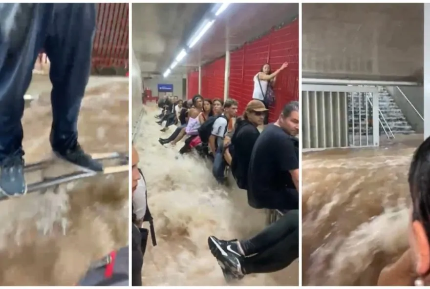 A estação, que fica na Zona Norte de São Paulo, foi tomada pela água. Um vídeo que circula nas redes sociais registrou o momento em que cerca de 20 passageiros se agarraram em um corrimão e em grades da estação para não serem levados pela forte correnteza que invadiu o local.