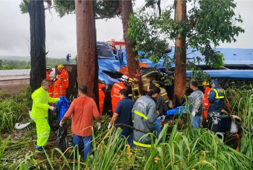 O acidente ocorreu em meio a uma forte tempestade, fazendo com que o ônibus aquaplanasse na pista e colidisse com árvores à beira da rodovia. As vítimas fatais, presas nas ferragens, foram encontradas somente após o veículo ser virado. Dos feridos, 19 sofreram graves lesões, incluindo fraturas e traumatismos, enquanto 28 tiveram ferimentos leves, incluindo quatro crianças. O resgate contou com a participação de equipes do Corpo de Bombeiros, Samu, Defesa Civil, ambulâncias de cidades próximas, Polícia Rodoviária Federal e a perícia da PCMG.
