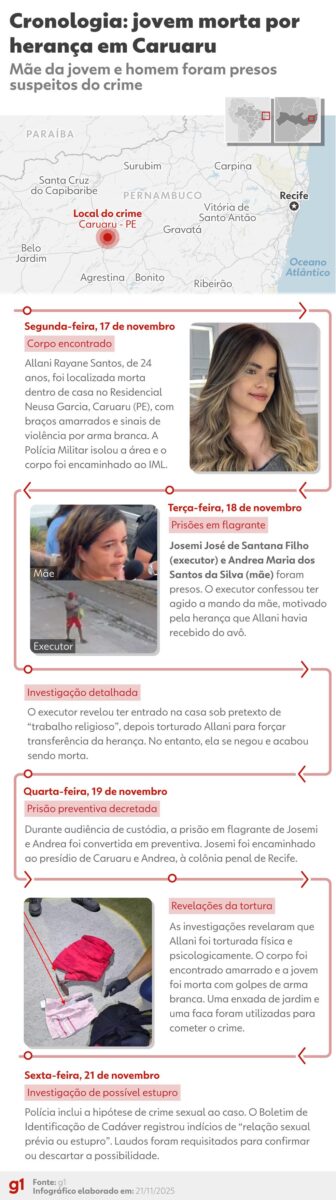 Mãe presa por mandar matar filha em PE; acusado tem ficha criminal com estupro, roubo e tráfico