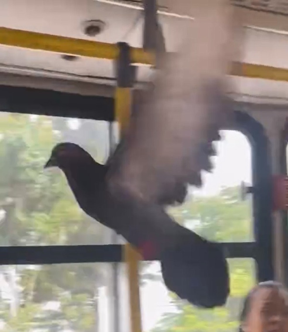 Pombo ‘anda de ônibus’ no Grande Recife e assusta passageiros: cena viraliza