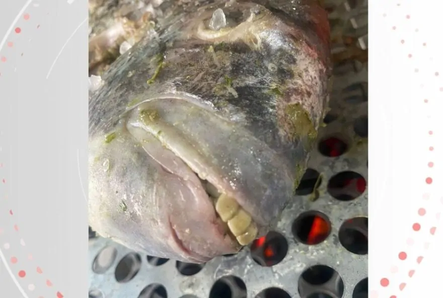 Animal foi comprado em Anchieta, na região Sul, por turistas mineiros. Vídeo com o peixe da espécie sargo-de-dentes tem mais de 4 milhões de visualizações. Família grelhou o peixe e só sobraram os dentes.