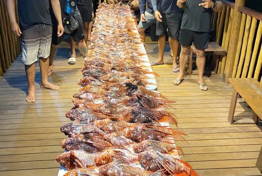 “Temos um projeto de manejo de espécies exóticas aprovado. As operadoras de mergulho fazem a captura e entregam os peixes ao ICMBio. Nós distribuímos os peixes-leão capturados para as entidades que fazem pesquisa e apoiam no levantamento das informações”, afirmou Lilian Hangae.