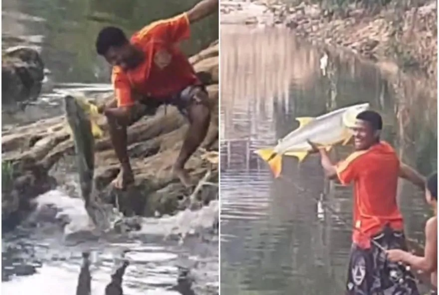 O perfil “Santo Antônio de Roça Grande – Sabará”, que divulgou o vídeo, confirmou que a pesca surpreendente aconteceu no bairro General Carneiro e disse que o pescador não usa redes sociais.