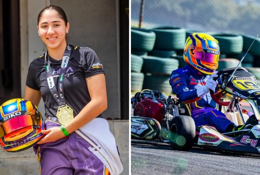 Estudos, treinos e muita adrenalina. Assim é a rotina da adolescente Anna Luiza Pimpão, de apenas 16 anos, e que é pilota de kart. A jovem caiçara é de Caraguatatuba, no Litoral Norte de São Paulo, e é um dos destaques nas categorias paulistas do esporte.