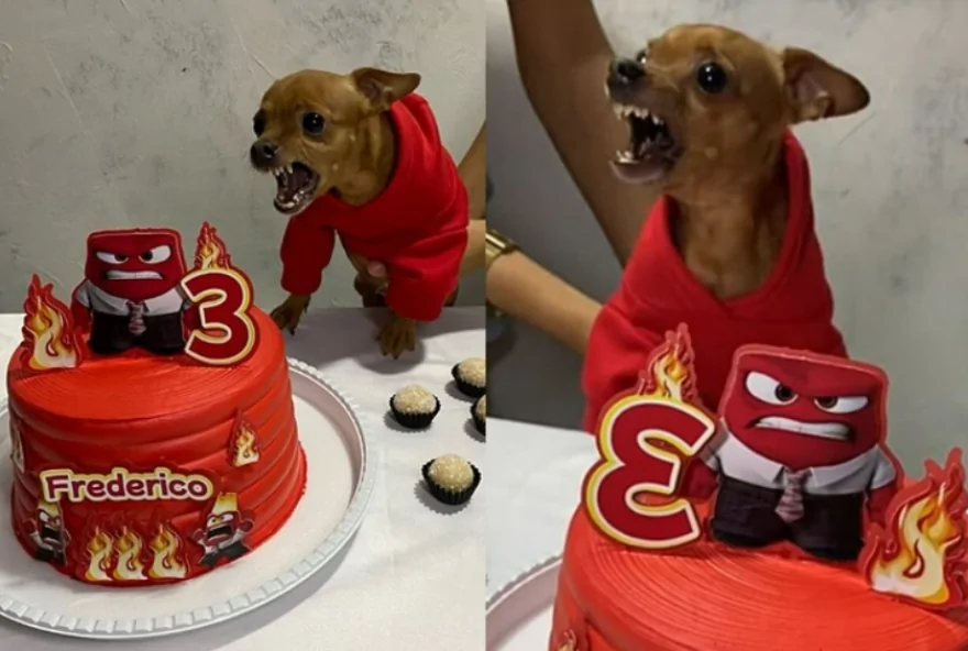 A festa contou com uma mesa decorada com o tema Raiva, com direito a bolo e salgadinhos personalizados. No vídeo, Frederico aparece latindo e rosnando para os convidados, confirmando o temperamento característico da raça, o que gerou muitas reações divertidas dos internautas.