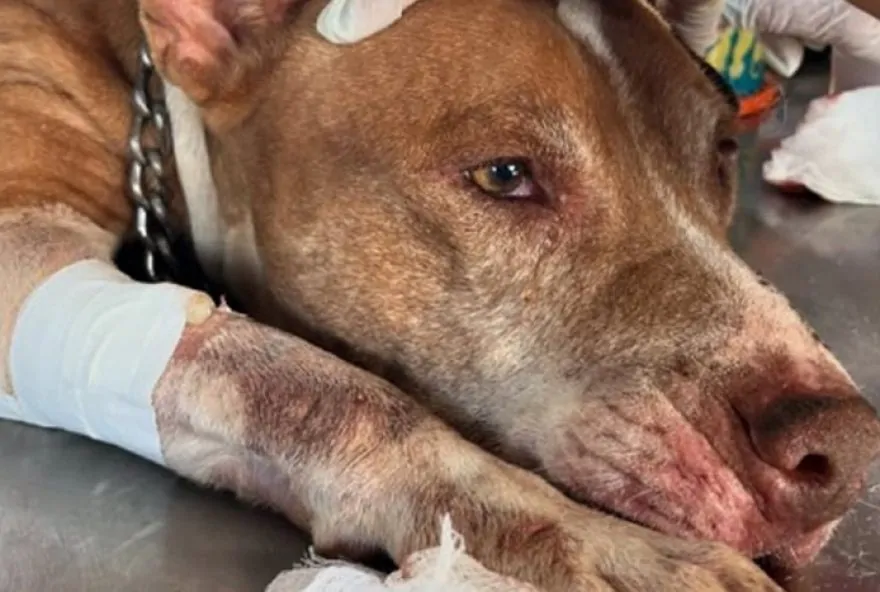Pit-bull Gerônimo é esfaqueado na cabeça e precisa de ajuda. Vídeo