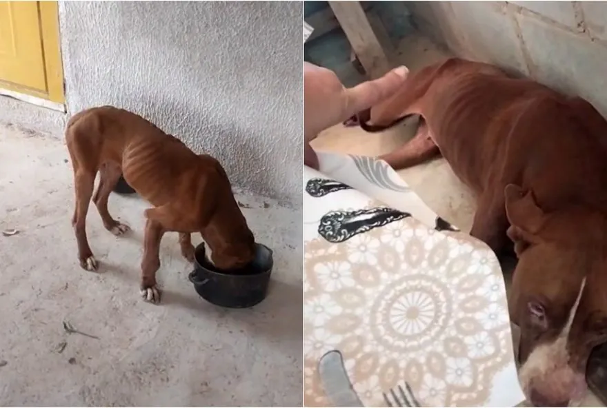 Segundo a protetora Michelle Santos da Silva, que fez o resgate, a cadela foi vista por meio de câmeras de segurança rondando um sítio em busca de alimento.