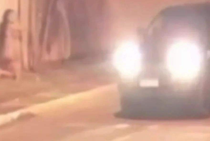 O crime foi registrado por uma câmera de segurança. Nas imagens, é possível ver o momento em que a caminhonete se aproxima da mulher, que estava sentada na calçada. Ela aparece ajoelhada e gesticula, até que se joga no chão. O veículo deixa o local em seguida.