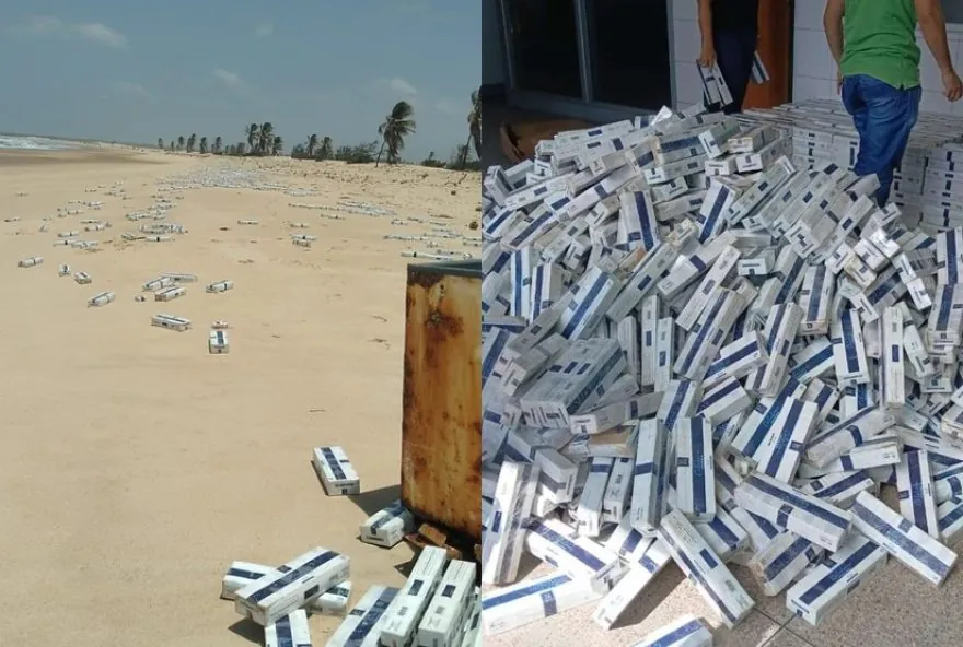 Mais de 2 mil caixas de cigarro são encontradas em praia no Ceará; vídeo