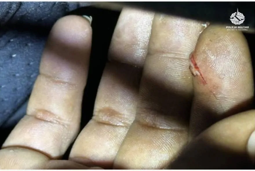 Equipes da Rondas Ostensivas Táticas Motorizadas (ROTAM) intensificaram o patrulhamento na região e localizaram os suspeitos saindo de um acesso à mata nas proximidades do condomínio. Durante a abordagem, o homem de 26 anos apresentava um ferimento na mão, ainda sangrando. O veículo roubado foi encontrado na área de mata, com marcas de sangue e a chave na ignição. Os suspeitos — uma mulher de 20 anos e três homens de 19, 26 e 40 anos — roubaram um Nissan Versa branco utilizando uma arma branca. Após o ataque, a vítima foi abandonada às margens da BR-070, ferida e em estado de vulnerabilidade.