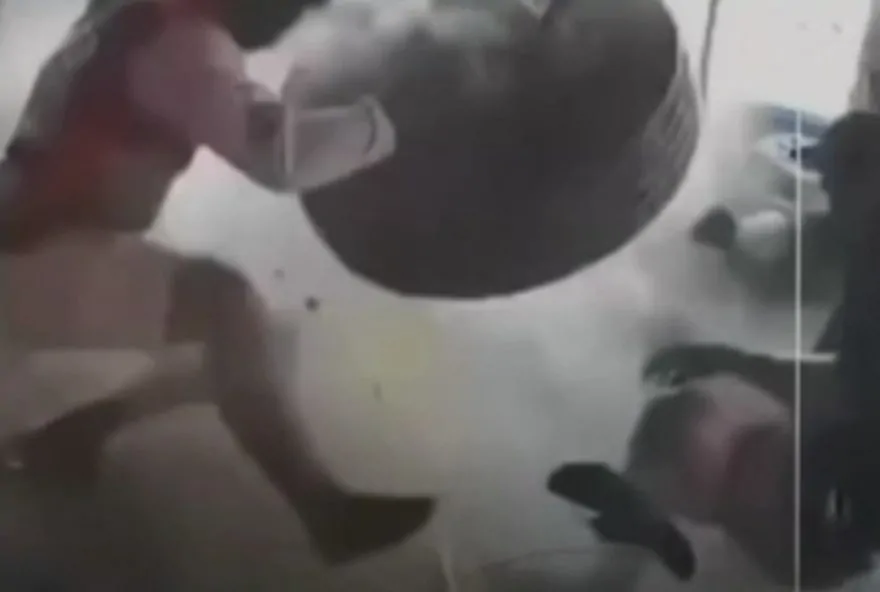 Um caminhoneiro se feriu e levou 11 pontos no queixo após um pneu explodir em uma borracharia de Reriutaba, no interior do Ceará. Uma câmera de segurança flagrou o momento da explosão. O caminhoneiro e um mecânico estavam calibrando o pneu quando o objeto explodiu.