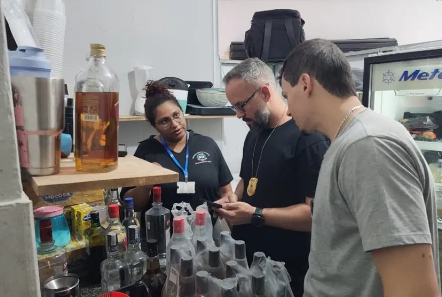 Foram apreendidas 17 garrafas em ação da Vigilância Sanitária, GCM e Polícia Civil. Segundo delegado, será investigada a origem das bebidas e se há indícios de falsificação.