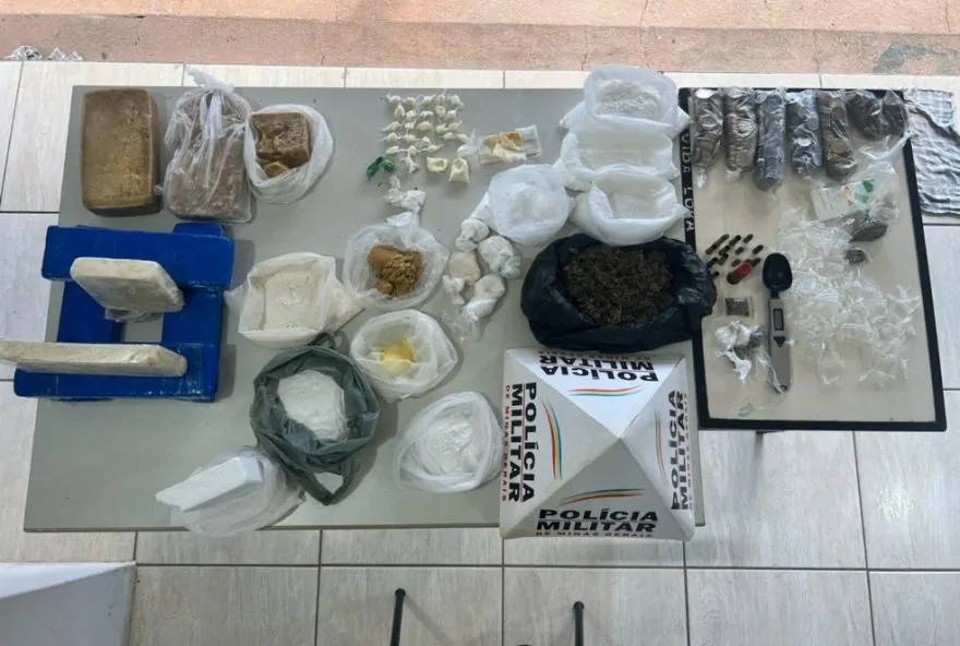 Com ajuda do cão farejador Zeus, a Polícia Militar apreendeu drogas, dinheiro, balanças e munições nos fundos de uma casa, em Padre Carvalho, nesta sexta-feira (4). Buscas mais minuciosas foram feitas por suspeita de que o local – que já havia sido alvo de uma apreensão na quinta (3) – pudesse ter mais materiais escondidos. Segundo a Polícia Militar, ao ser aplicado na residência, que fica no Centro, o cão indicou que haveria algo em um cômodo na área de lazer do imóvel. Os policiais fizeram uma varredura e encontraram duas mochilas embaixo de outros objetos. A ocorrência terminou com a apreensão de crack, cocaína, maconha, R$ 450, materiais usados para embalar entorpecentes, duas balanças e uma moto.