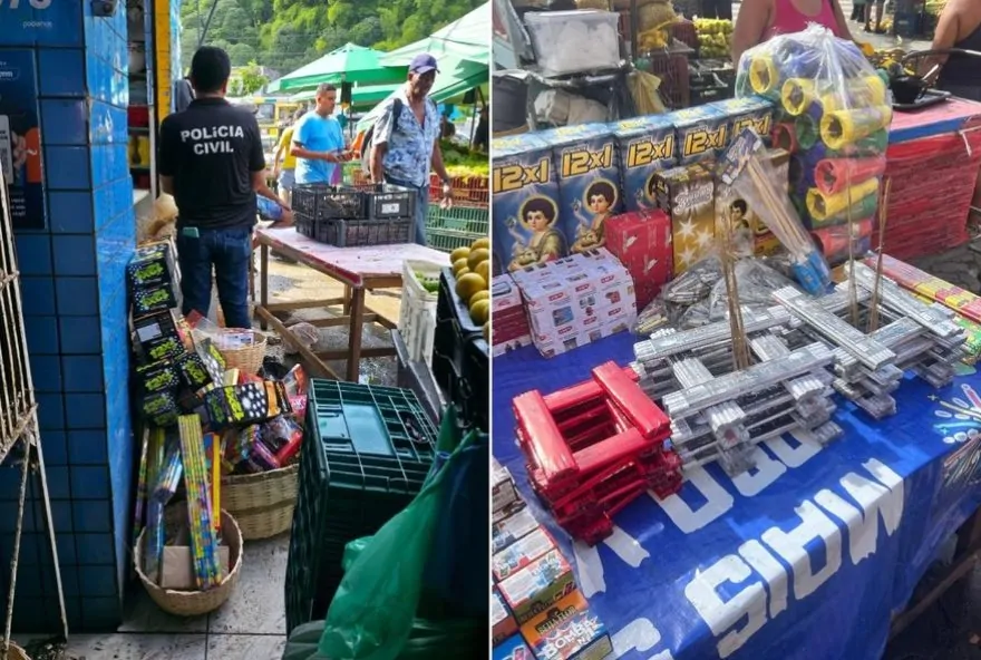 Somente no último dia, em Salvador, foram encontradas cerca de 40 mil unidades. As fiscalizações ocorreram em quatro estabelecimentos na Feira de São Joaquim e em oito barracas na feira de fogos da Avenida Paralela. Durante a abordagem, conforme informou a polícia, um dos proprietários tentou se desfazer do material ilegal, mas foi flagrado pelos agentes e acabou autuado na Delegacia de Defesa do Consumidor (Decon). O homem responderá a inquérito policial pelo crime de comercializar mercadorias impróprias para consumo.