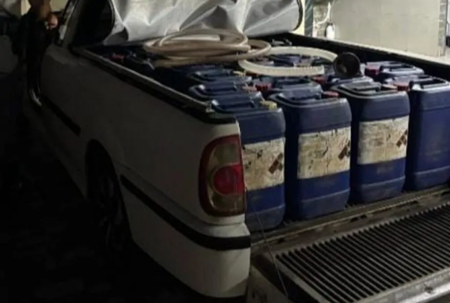 Durante patrulhamento, os policiais avistaram o portão da garagem aberto e um carro sendo abastecido com uma mangueira. Ao se aproximarem, os agentes encontraram vários balões com etanol espalhados pelo quintal e dois reservatórios com capacidade de mil litros cada.