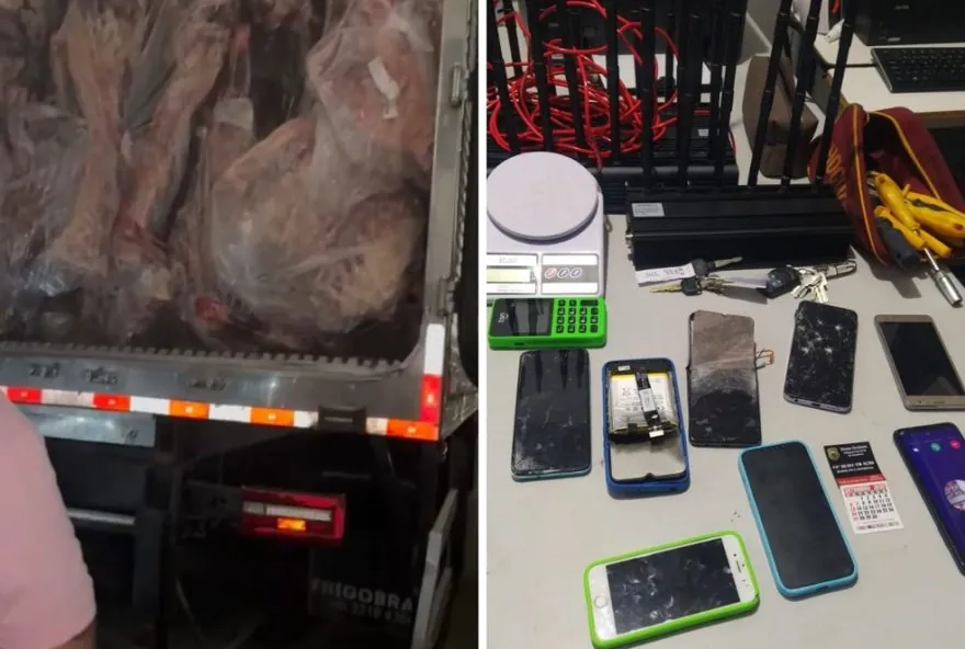 No galpão, foram descobertos um aparelho bloqueador de sinais, uma balança de precisão, 1 quilo de maconha, um veículo roubado, um veículo utilizado em atividades criminosas e a grande quantidade de carne bovina refrigerada avaliada em R$ 320 mil. Após a prisão, os acusados permaneceram à disposição da justiça para as providências necessárias.