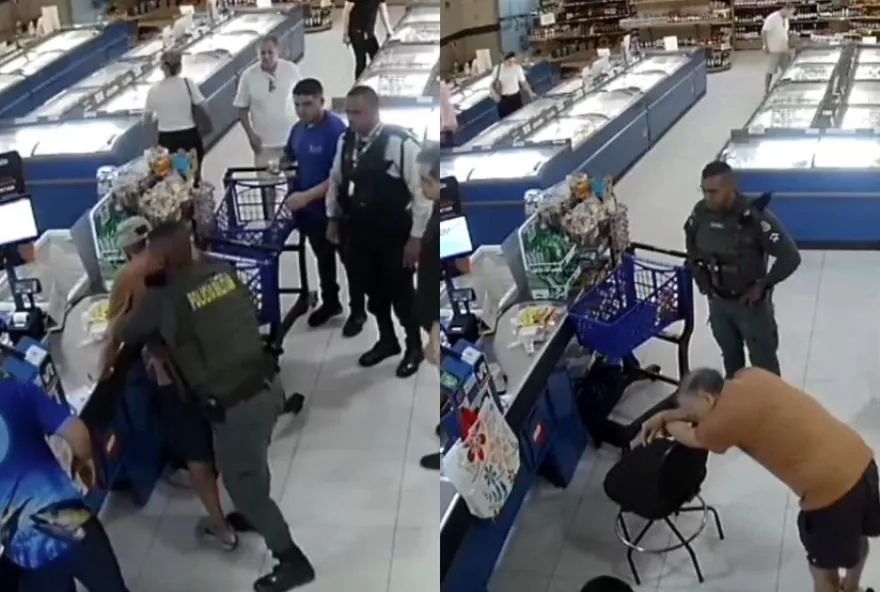 Homem se engasga com farofa na fila de supermercado, e policiais aplicam manobra de Heimlich para salvá-lo
