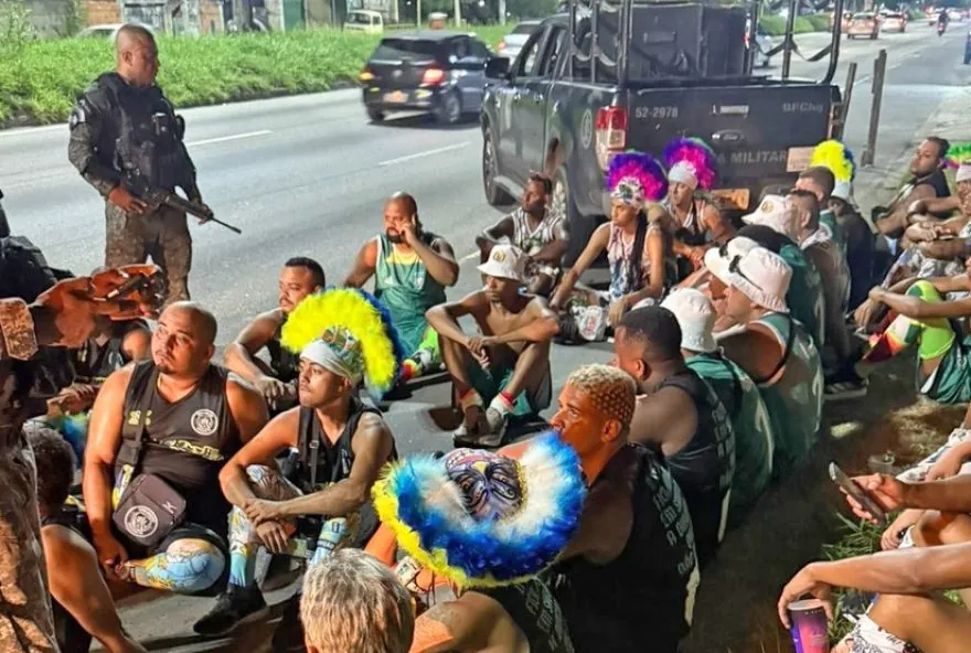 Policiais militares do Batalhão de Polícia de Choque interceptaram um grupo de bate-bolas armados na noite de segunda-feira (16) na Avenida Brasil. No total, 61 pessoas foram presas. O grupo saiu do Município de Nilópolis e pretendia chegar ao Complexo da Penha, na Zona Norte do Rio de Janeiro.