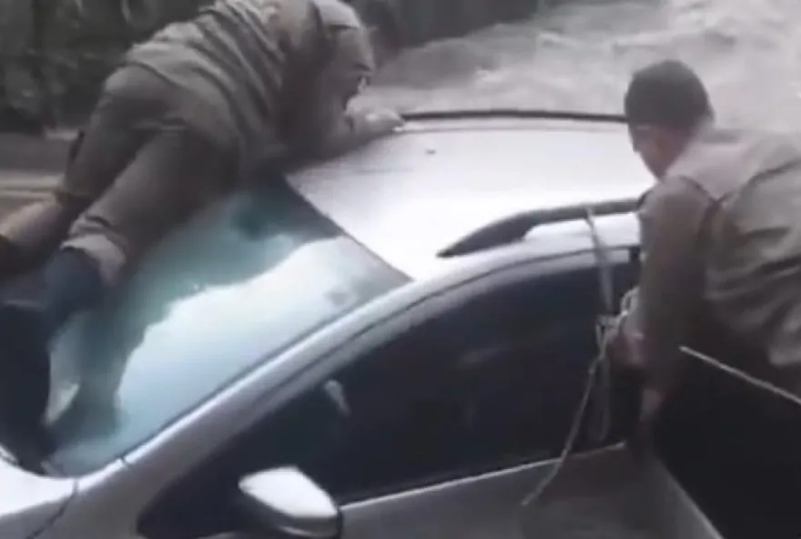 Policiais resgatam pessoas após carro cair no rio em Minas. Vídeo
