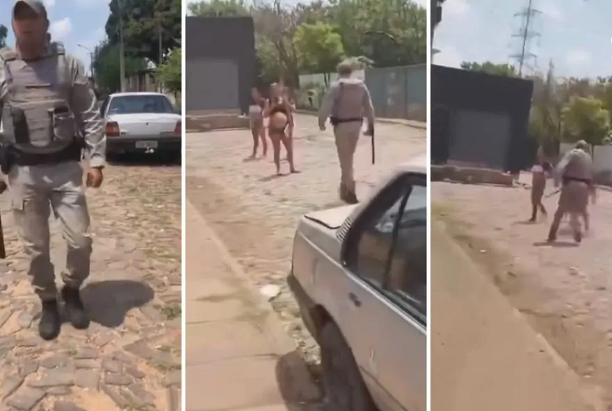 Policial militar é flagrado agredindo mulher grávida com cassetete