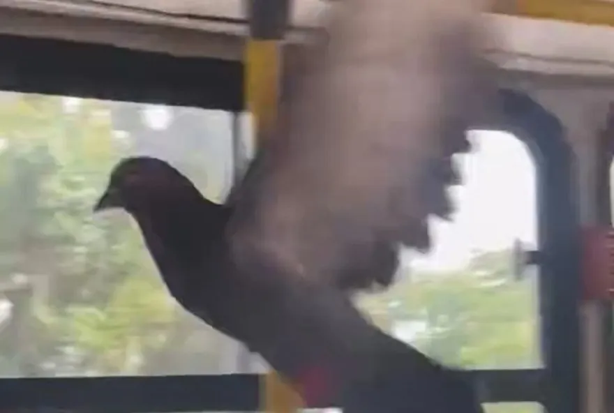 O vídeo mostra um pombo voando bem próximo da cabeça das pessoas, que desviavam. O coletivo não estava lotado, mas as cadeiras estavam ocupadas e alguns passageiros caminhavam pelo corredor. “Meu Deus do céu! Jesus!”, gritaram algumas passageiras, que também riam da situação.