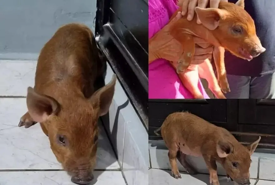 Porquinha perdida é resgatada na rua por casal após quase ser atropelada em Matão