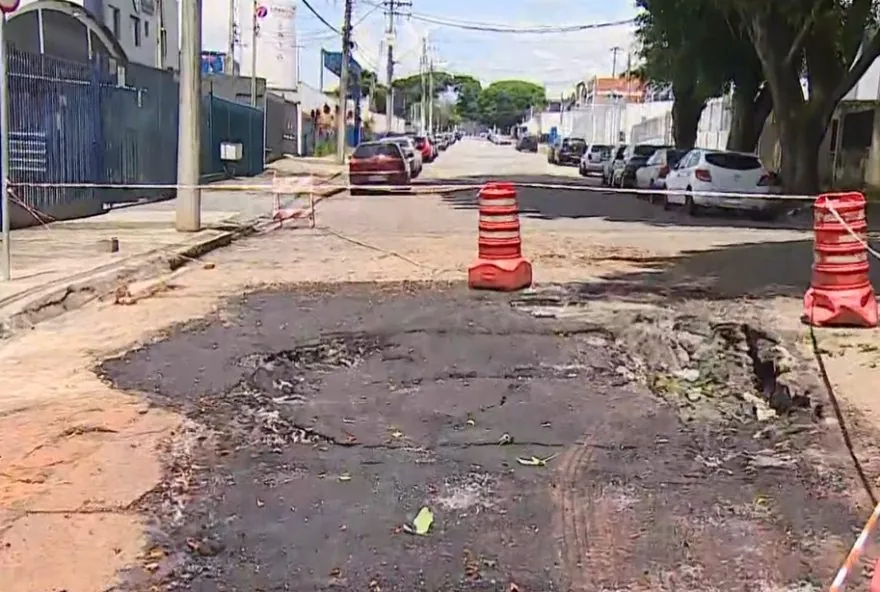 O asfalto de uma rua da Zona Sul de São José dos Campos voltou a ceder após a prefeitura da cidade tapar uma cratera que havia sido aberta no local, na última terça-feira (17).