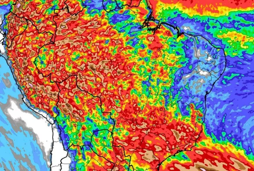 Por outro lado, o Oeste da Bahia, Maranhão, Piauí e partes do Ceará devem receber chuvas mais significativas. No Centro-Oeste, a tendência é de acumulados altos de chuva, especialmente entre o Mato Grosso e o Mato Grosso do Sul. Em Goiás, os volumes serão menores, mas com chuvas fortes e marcas pluviométricas altas, particularmente no Sul do estado.