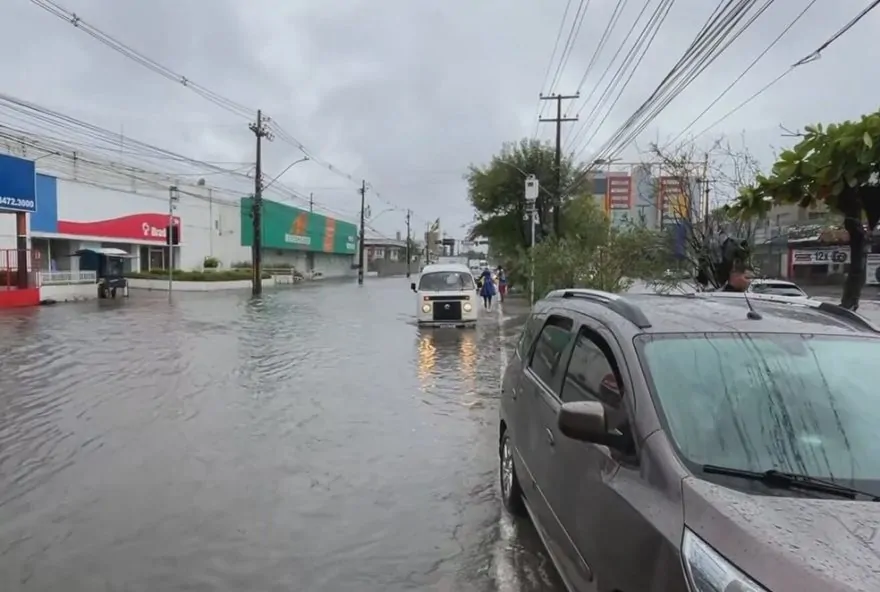Chuva deixa ruas e avenidas alagadas no Grande Recife