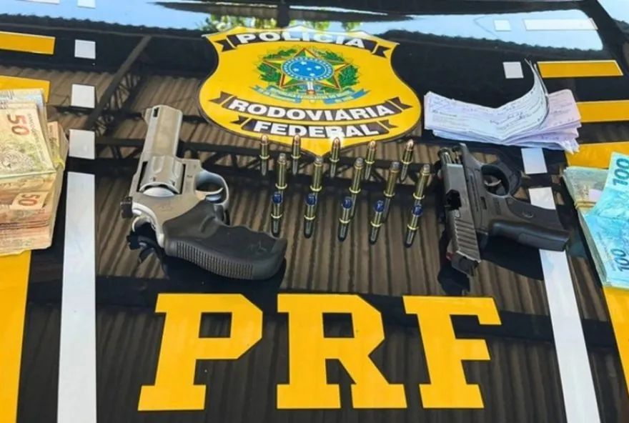 Após o desembarque dos ocupantes, os agentes revistaram o veículo e encontraram, no porta-luvas, uma pistola calibre 9mm, um revólver calibre .357, dois carregadores (um deles com munição), além de 153 munições de calibre .357 e 113 de calibre 9mm — totalizando 266 munições. Todo o material estava guardado junto no mesmo compartimento, o que é proibido pela legislação atual.