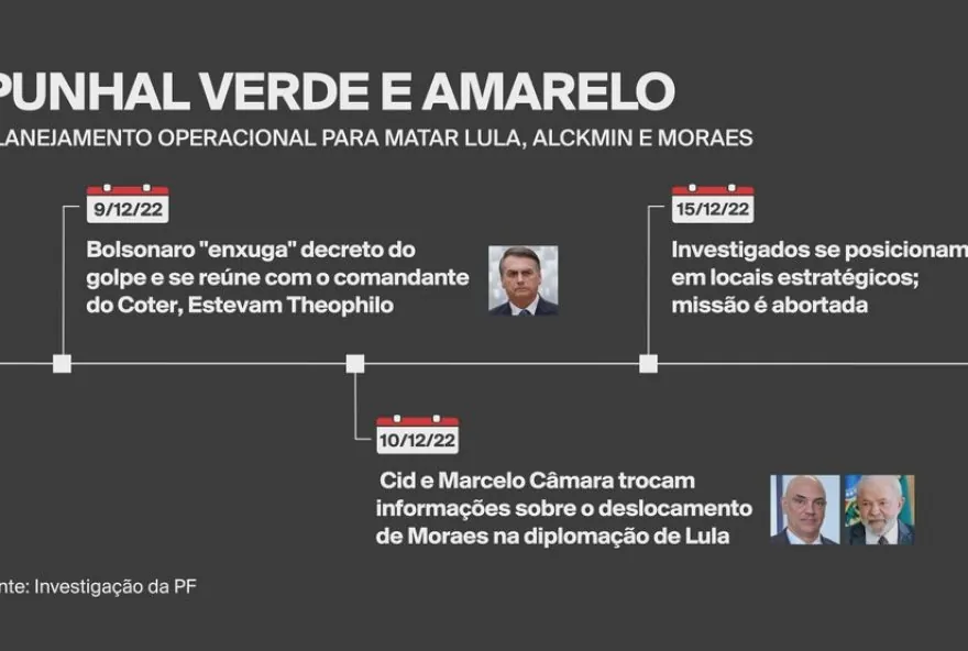 A PGR afirma que o grupo participou de ações coercitivas, incluindo o monitoramento de autoridades e o planejamento de ataques contra elas. A lista conta com “kids pretos” — também chamados de “forças especiais” (FE) —, militares da ativa ou da reserva do Exército, especialistas em operações especiais. Segundo a Polícia Federal, o grupo elaborou um plano chamado “Punhal Verde e Amarelo”, que previa o assassinato do presidente eleito Luiz Inácio Lula da Silva, do vice-presidente Geraldo Alckmin e do ministro Alexandre de Moraes.