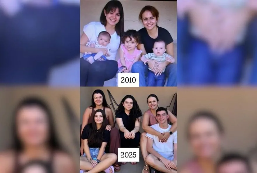 “Pelo grupo da família no WhatsApp, minha mãe enviou como uma recordação. A foto foi tirada em junho de 2010 e sugeriu a ideia de fazermos novamente no mesmo local e na mesma posição. Ficamos espantados, principalmente aos vermos os bebês da foto, que agora estão com 15 e 17 anos de idade”, conta.