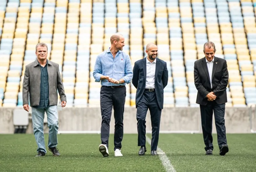 DE Príncipe William visitou o Maracanã ao lado de representantes do Fluminense e Flamengo em um evento focado em causas ambientais. Luiz Eduardo Baptista e Mattheus Montenegro acompanharam o príncipe na ocasião, que também contou com a presença do diretor presidente do estádio, Severiano Braga.