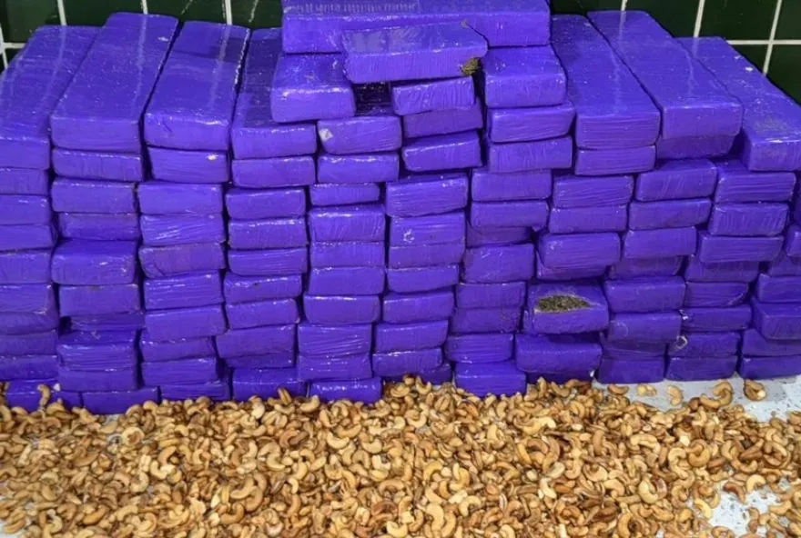 A polícia encontrou mais de 100 kg de maconha dentro de sacos de castanha de caju no interior do Ceará, resultando na prisão de dois homens, de 42 e 39 anos.